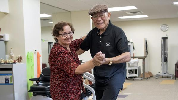 Angel and his wife, Raquel, dance at a physical therapy appointment. (Courtesy: Cleveland Clinic)
